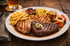 Saftiges Grillkotelett vom Schwein, Huhn und bestem Rind serviert mit regionaler Beilage